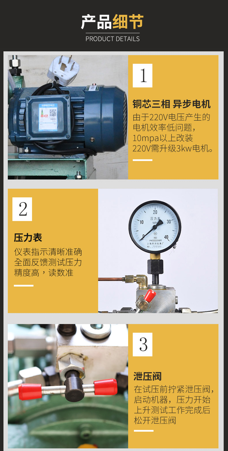 1. 若需要6缸的試壓泵,請選用 DSB電動試壓泵(2.5-40Mpa)
